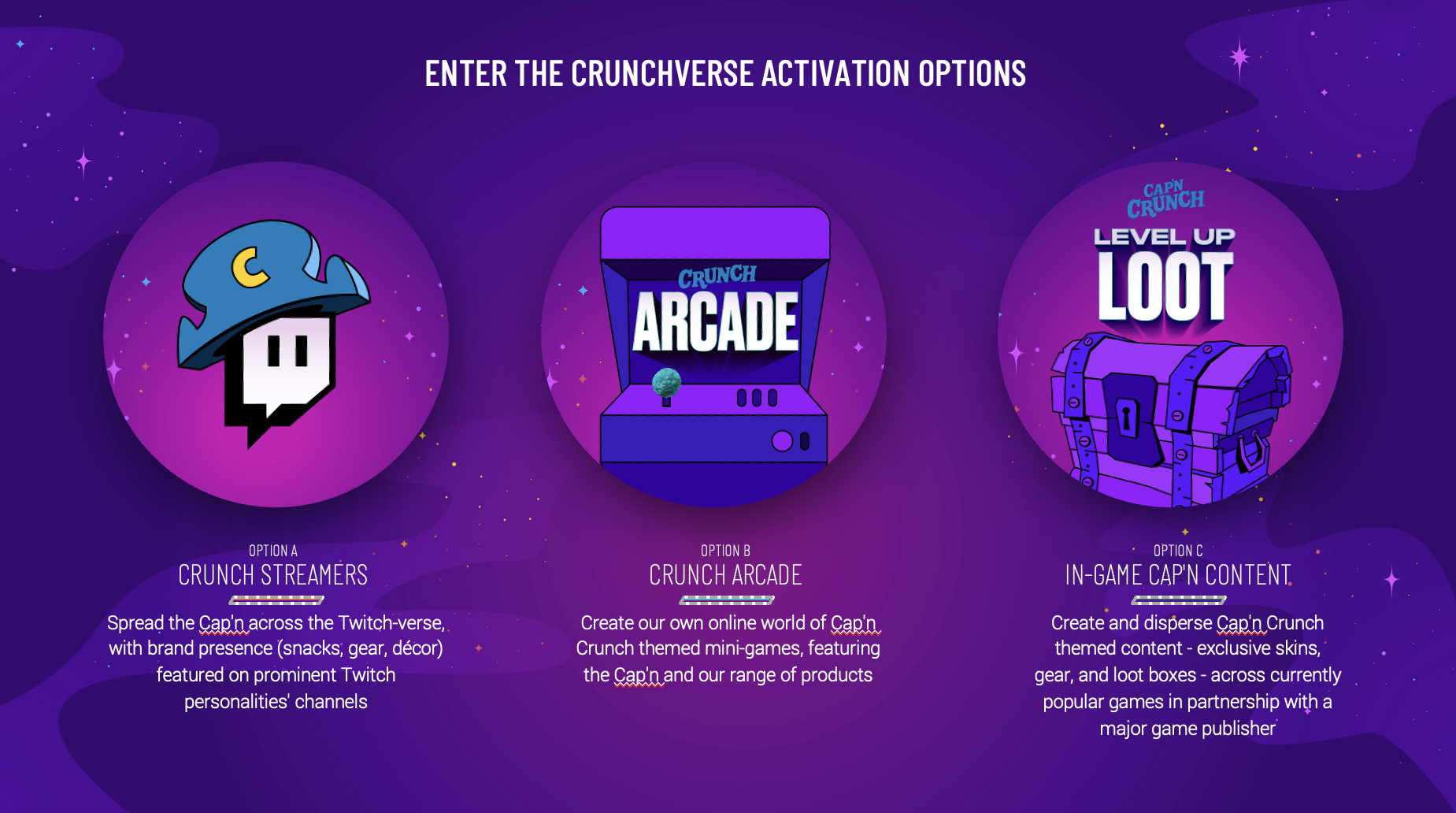 This would go on to become the Cap’n Crunch Arcade once the reality of that little thing called money reared its head. But this deck is still being used as a best-in-class pitch story at my agency, so I thought it warranted its own space.